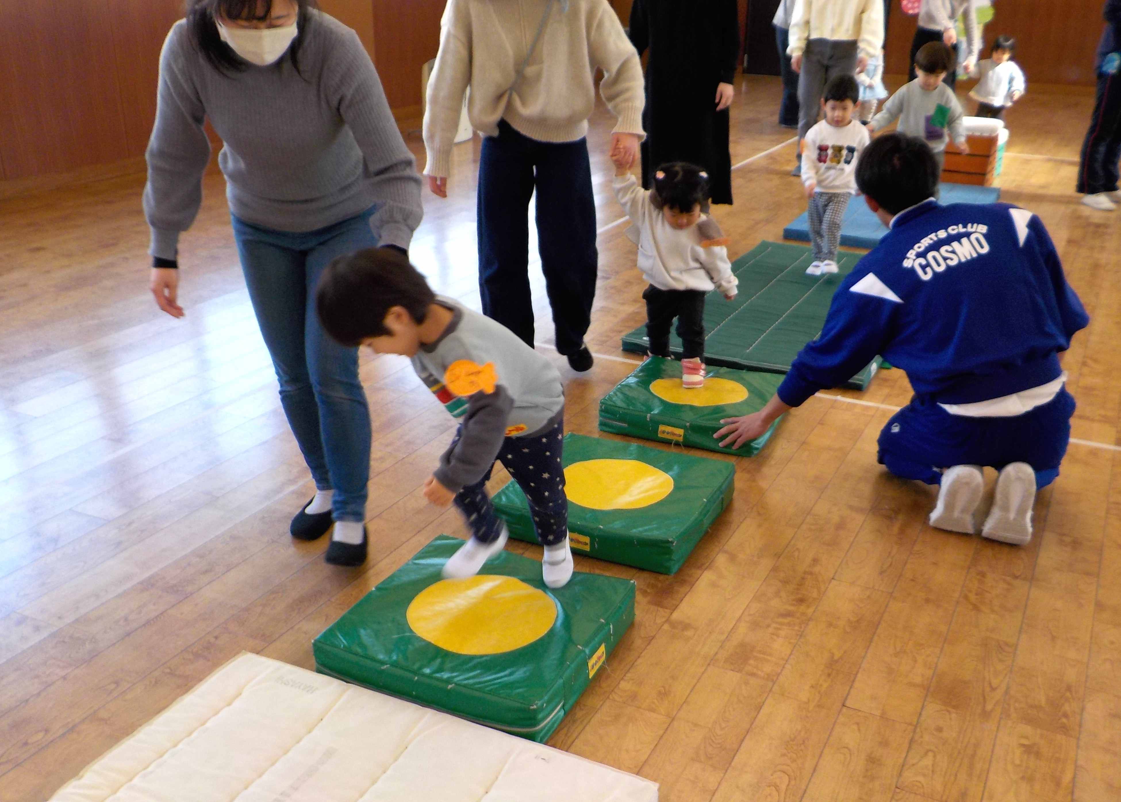| 本日のスイミーはサーキット遊びをしました! だるまさんのリズム体操で身体を動かした後は、サーキット遊び! 最初はマットからマットへジャンプ!次は跳び箱に上って跳び箱からジャンプ!怖がっていたお友達も最後には勇気を持って上手に飛べていました☆ その後は橋やトンネルを渡ったり鉄棒でぶらぶらしたり、少しずつ増えてきた道具にも楽しくチャレンジ出来ましたね♡ 次回のスイミーは2月19日(木)となります。 11:00から体育館で行います! 沢山のご参加お待ちしております♪ |