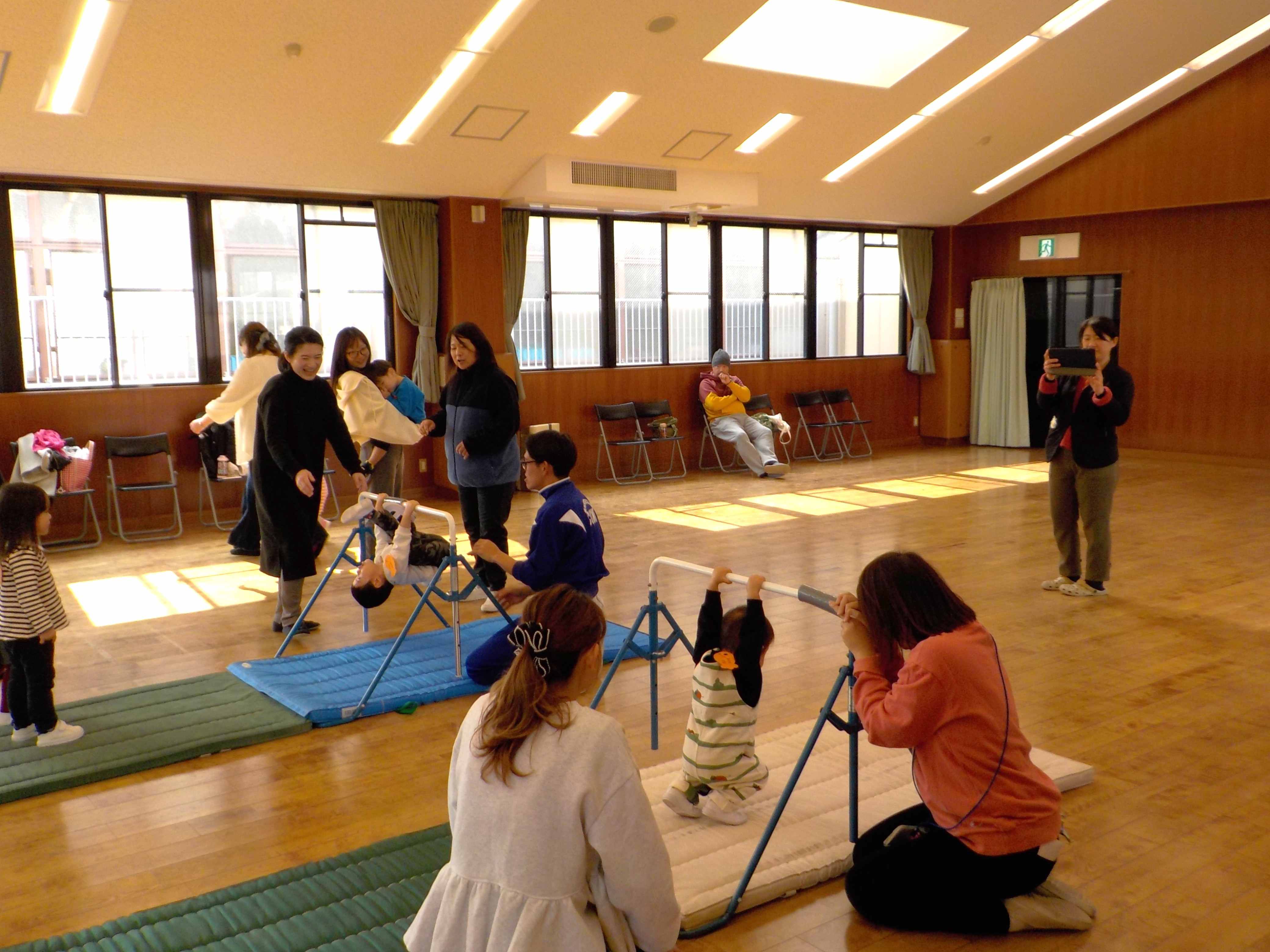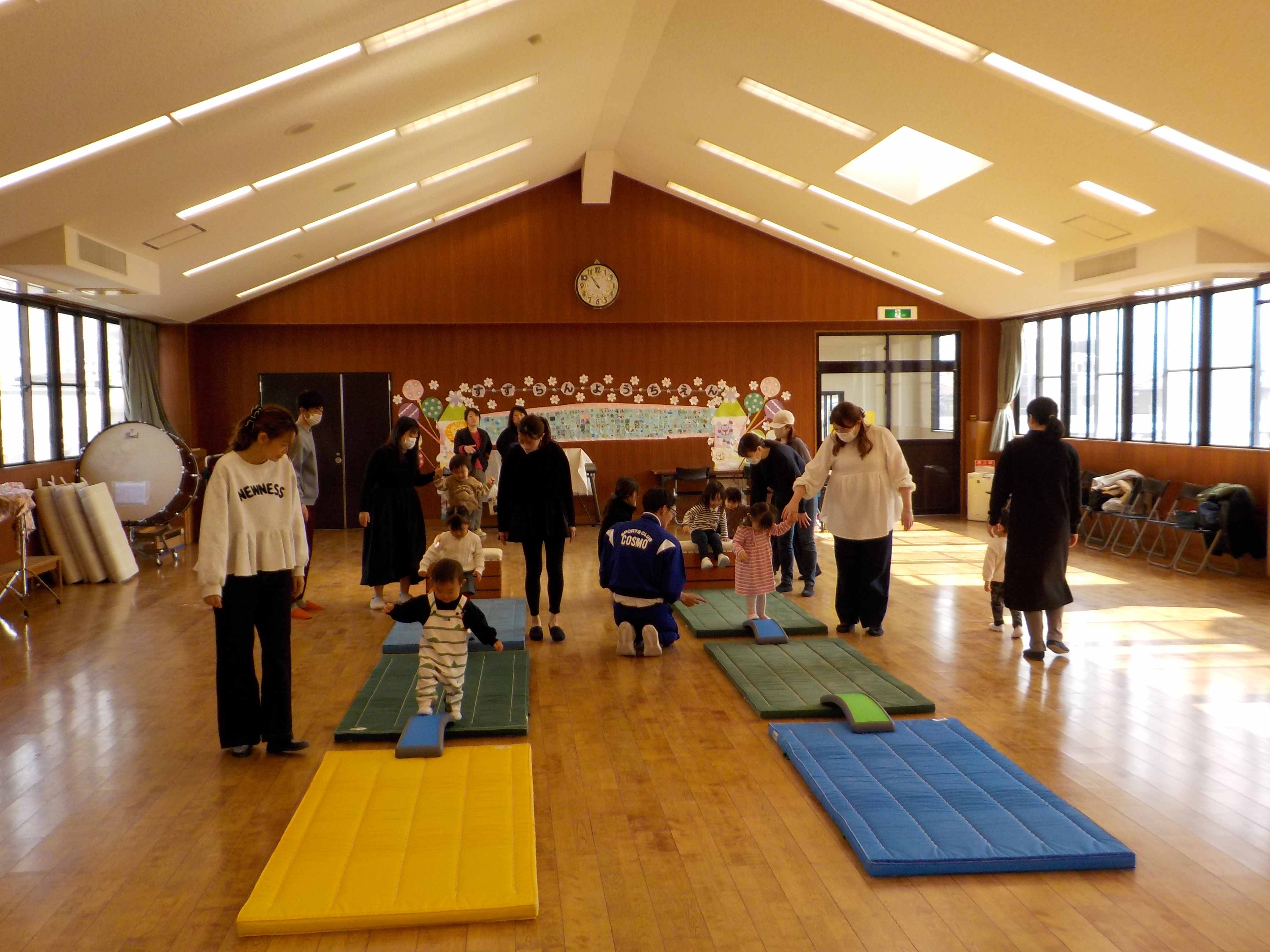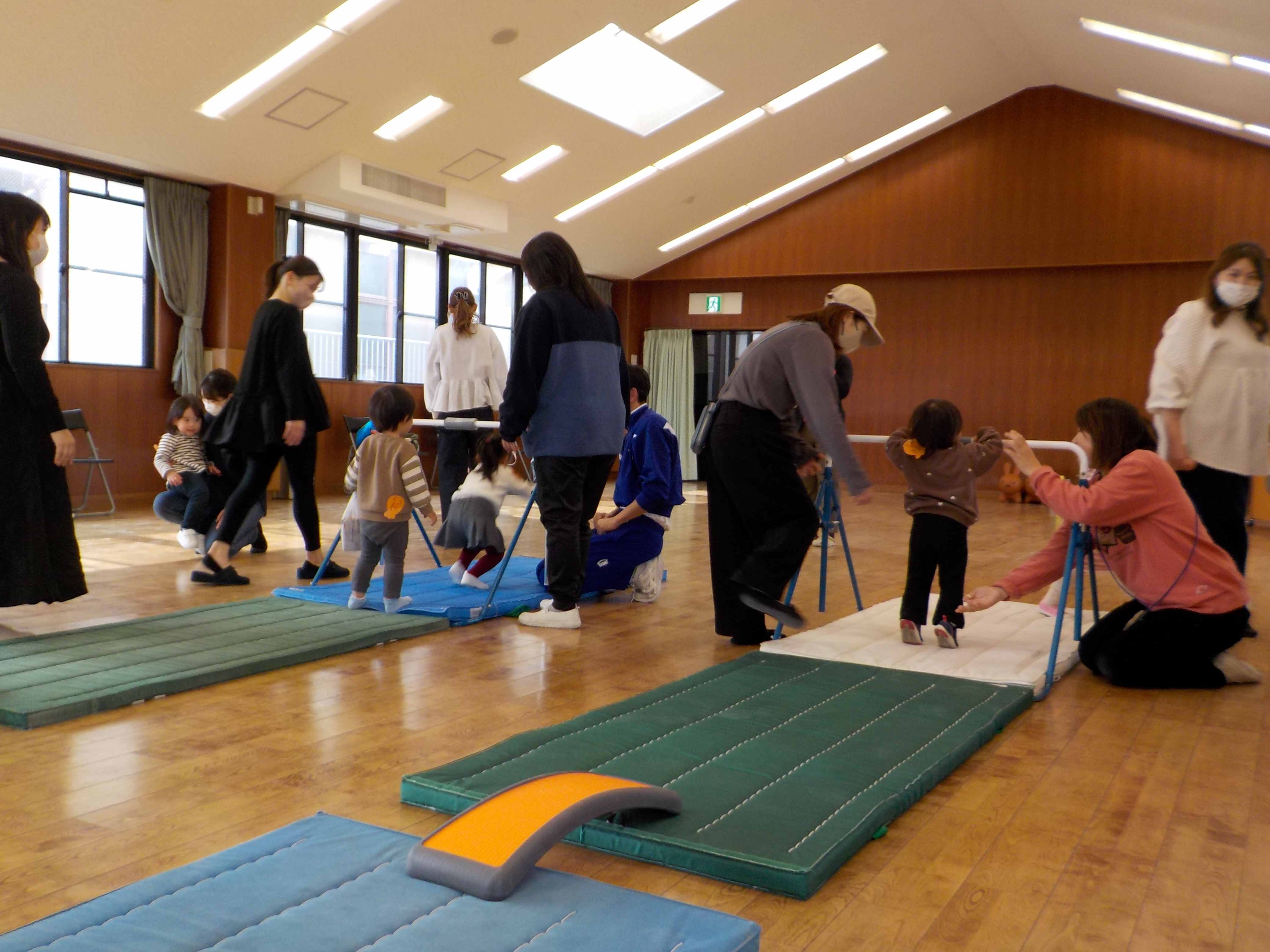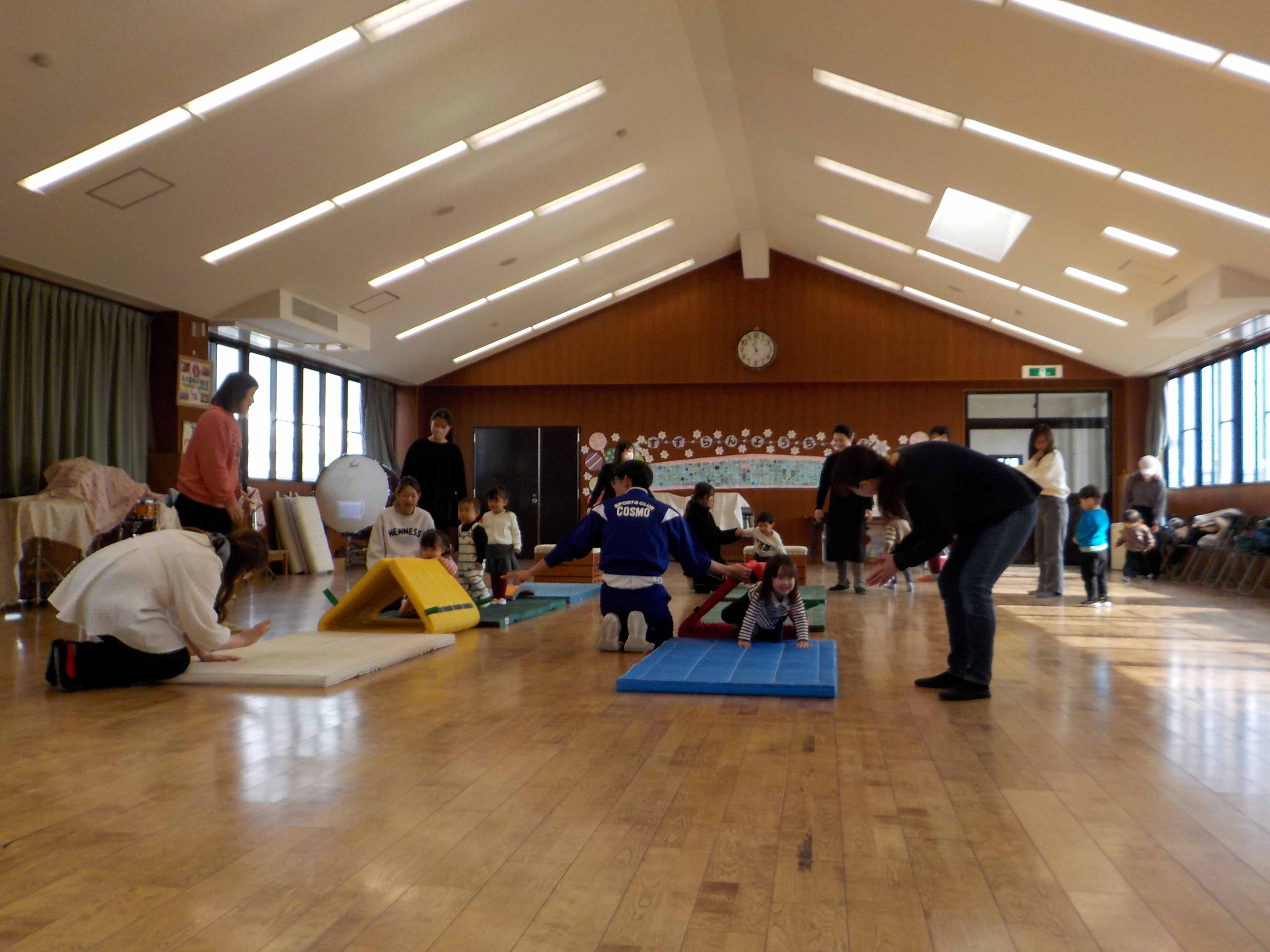 | 今日は久し振りに体育館でのスイミーでした!「広い体育館で思いっきり動いて遊ぼう!!」ということで マットや跳び箱を使ってのサーキット遊びをしました! 最初はマットだけだったのが、 どんどんと色んな器具が増えていき 沢山の障害物を越えて進んでいきました♪ ジャンプしたり、くぐったり、色んな動きが出来て 楽しそうに参加されていました! 次回のスイミーは12月18日10時半から 体育館で行います! ご参加、お待ちしております♪ |