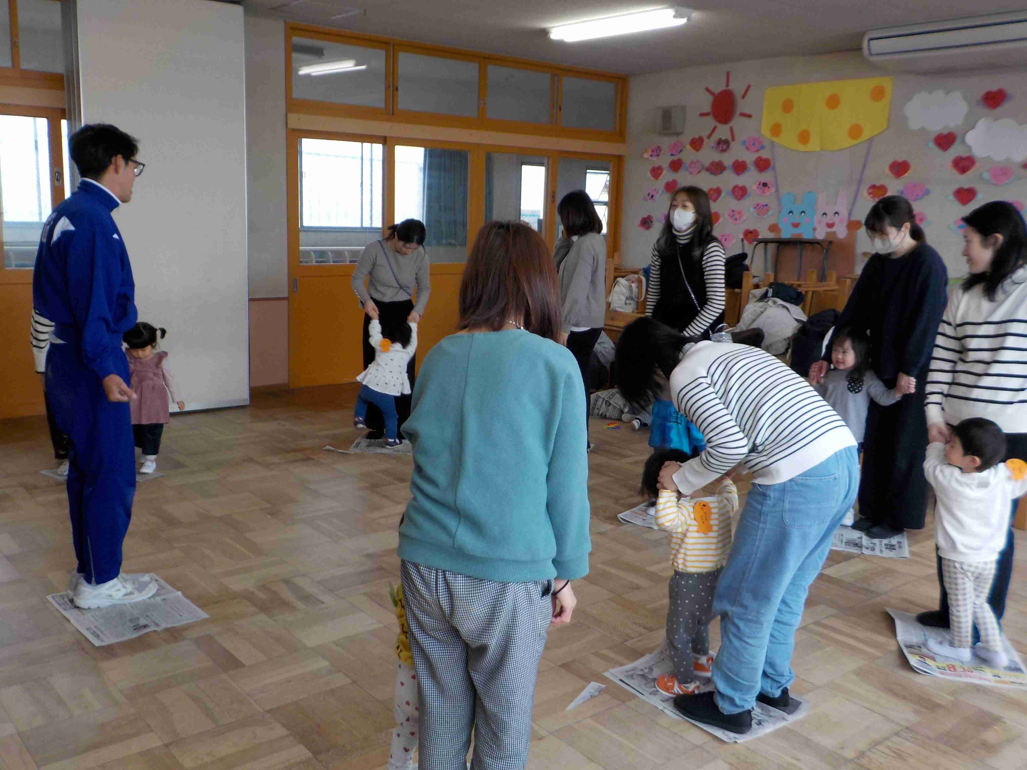 | 本日のスイミーは「新聞遊び」をしました! 折りたたんでどんどん小さくなっていく新聞紙から 落ちないようにお家の人と乗ったり、 丸めてボールにしたりして遊びました! お家の人に新聞紙を広げて持ってもらい、 こども達は思いきりパンチ☆ 大きい新聞紙はちぎって小さくして 上に放り投げたらひらひら~と落ちてきて とっても楽しそうでした♪ 最後は散らかった新聞紙を袋の中にお片付け♪ 力を合わせて上手にお片付け出来ました! 今年度のスイミーも残り木曜日が2回、土曜日が1回です。 まだまだご予約受付中ですので、たくさんのご参加、お待ちしております♪ |