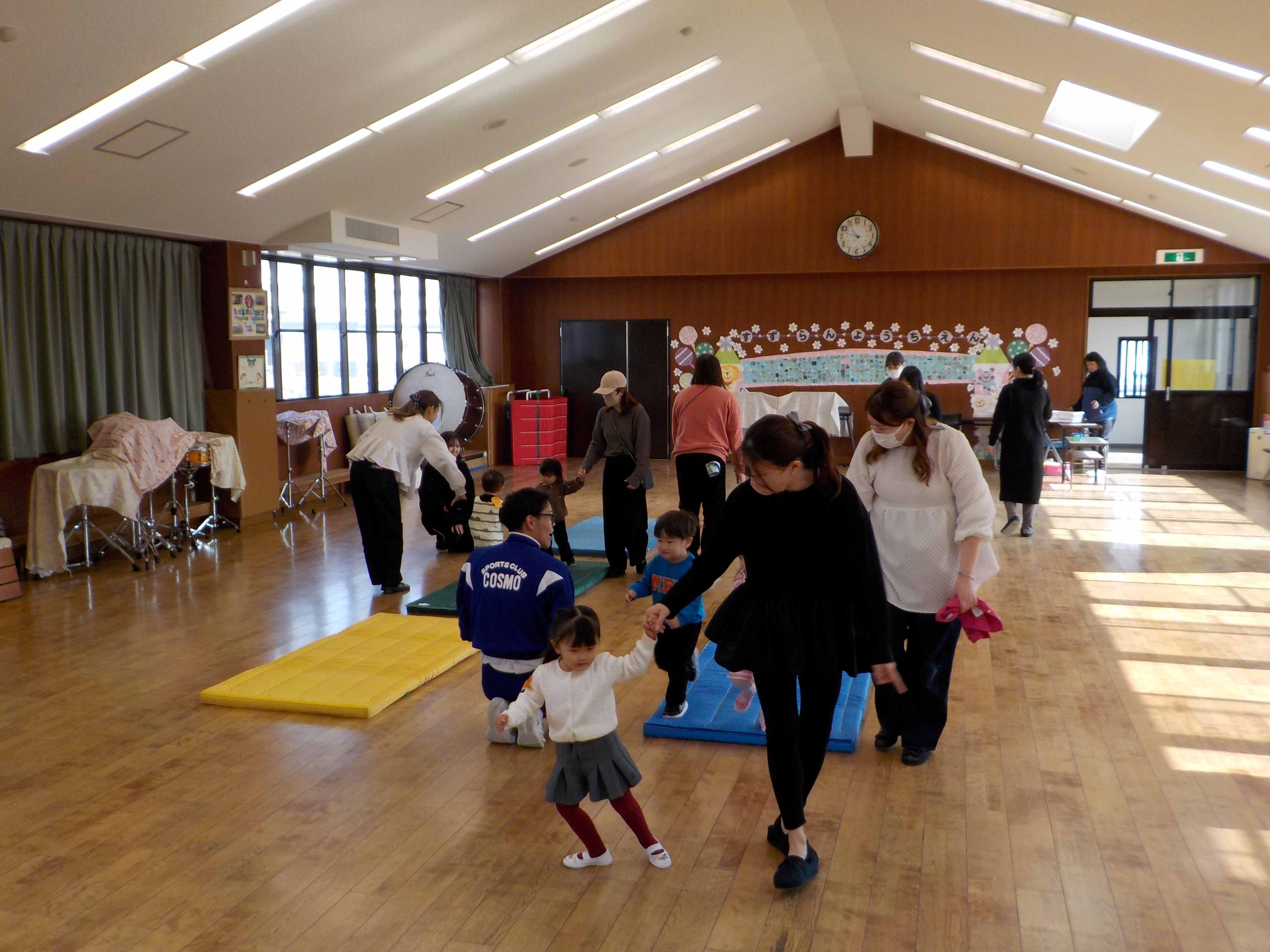 | 本日のスイミーは「フラフープ」を使って遊びました! かわいいうさぎやカンガルーなどたくさんの動物に変身したり、おうちの人とフラフープを使ってたくさん遊びました♡ おうちの人とお散歩したり、オオカミに見つからないように隠れたり、フラフープをくぐったりと上手にできましたね! 次回のスイミーは2月5日(木)となります。 この日はミニスイミーになります。 10時~と11時~の2部制となります。 たくさんのご参加お待ちしております! |