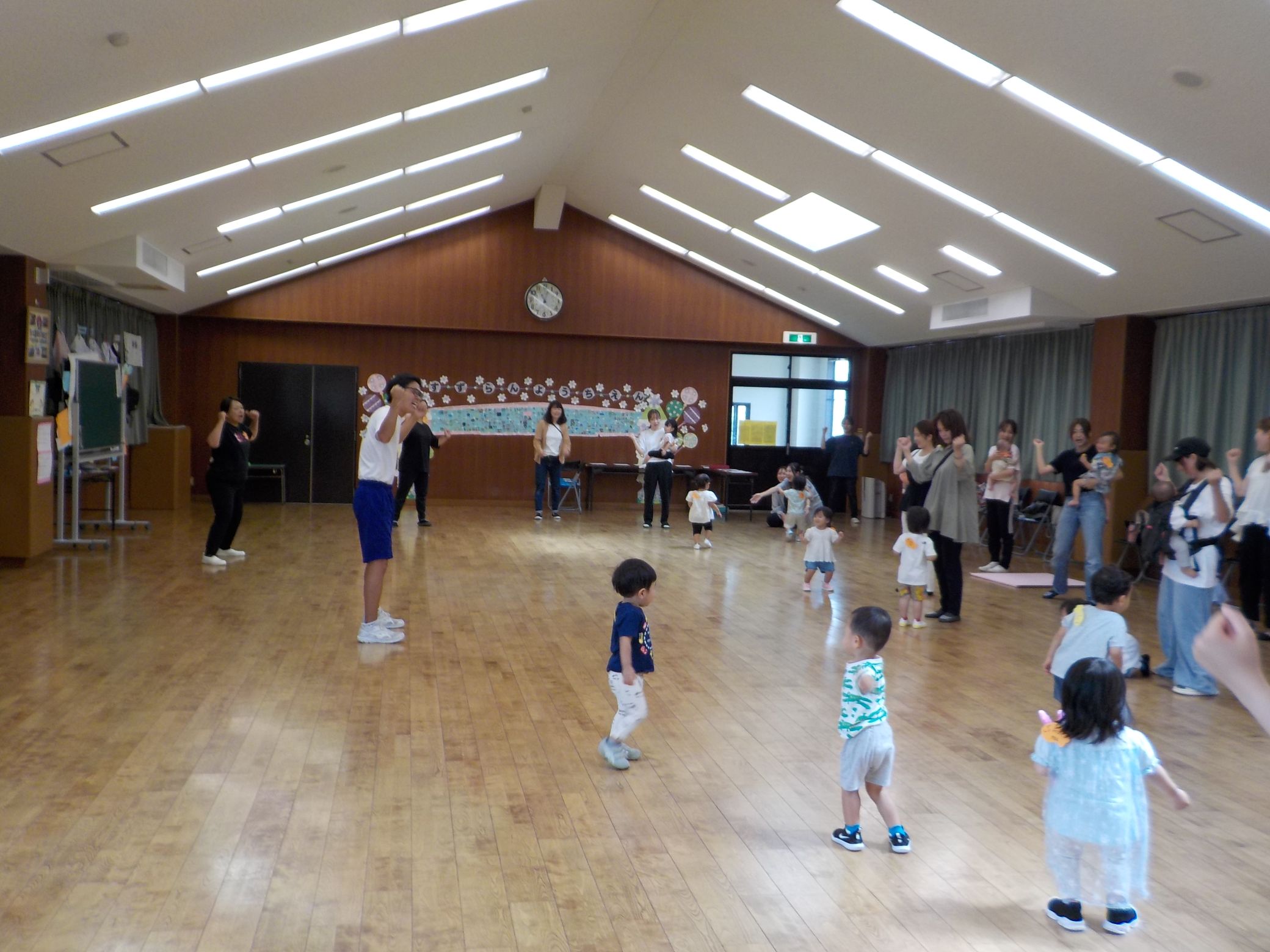 本日のスイミーは(ボール遊び)を行いました!お家の方と一緒にボールを投げたり、転がしたりして楽しんだ後は、体操の先生の投げたボールに当たらないように一生懸命逃げましたよ♪最後はいつもの♪ラーメン体操!皆さん上手に可愛らしく踊れていましたね! 次回のスイミーは9月18日(木)です。たくさんのご参加お待ちしております! |